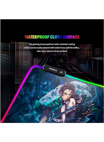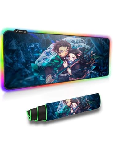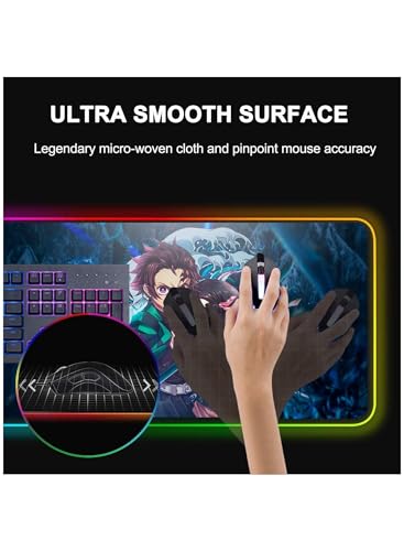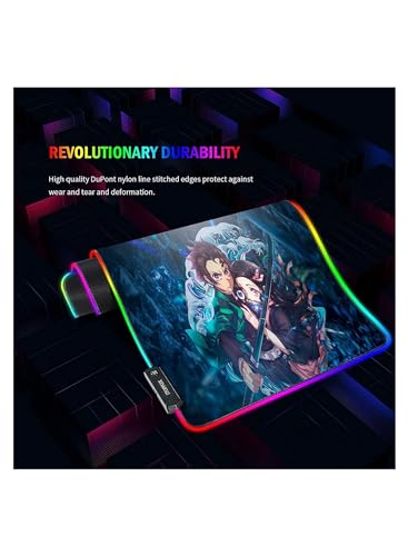 Generic - لوحة ماوس ألعاب بألوان ار جي بي مضيئة بتصميم انيمي مع قاعدة مطاطية مضادة للانزلاق - 30 × 80 سم