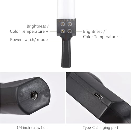 Generic - عصا ليد RGB 40 W ملونة محمولة باليد التصوير الفوتوغرافي احترافي 300 خرزة ضوء ساطع ثنائية اللون درجة الحرارة 3000K-6500K 0-100% سطوع عاكس للضوء بدون خطوة مع 17 نوع من الالوان