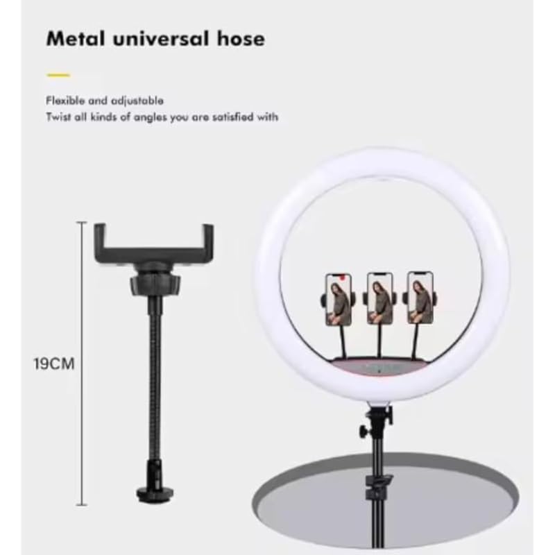 Generic - حلقة إضاءة ار جي بي مع 3 حوامل موبايلات بألوان متعددة للإضاءة عملية للغاية للفيديو والتقاط الصور 56 سم - أسود