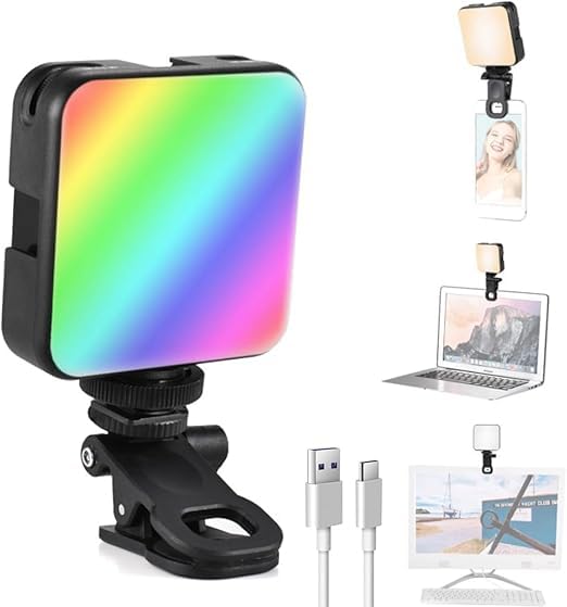 Generic - مصباح فيديو ار جي بي، لوحة LED قابلة لاعادة الشحن مع مشبك تثبيت، شحن USB-C، اضاءة متعددة الالوان للتصوير الفوتوغرافي
