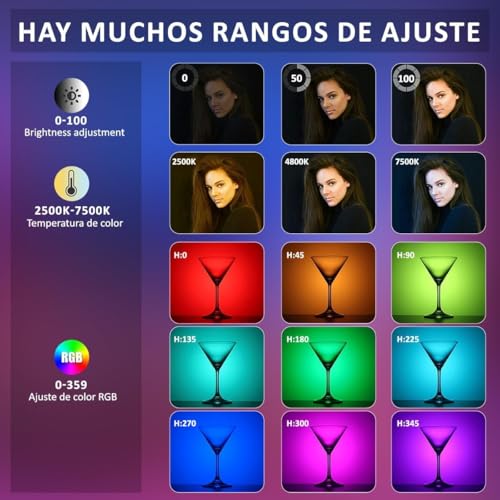 - إضاءة بألوان الفضاء اللوني ار جي بي: تتميز بلوحة LED متعددة الألوان نابضة بالحياة مع درجات ألوان قابلة للتعديل ومستويات سطوع، مثالية للتصوير الفوتوغرافي الإبداعي وتسجيل الفيديو وتطبيقات البث المباشر