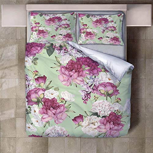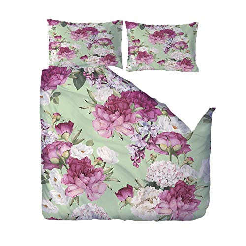 RGBVVM - طقم غطاء لحاف 79 × 79 انش من المايكروفايبر بلون بينك روز من ار جي بي في ام مكون من 3 قطع سهل العناية وذو تصميم قطني فائق النعومة مع سحاب اغلاق + 2 كيس وسادة مقاس 50 × 75 سم، بوليستر، رائحة الزهور