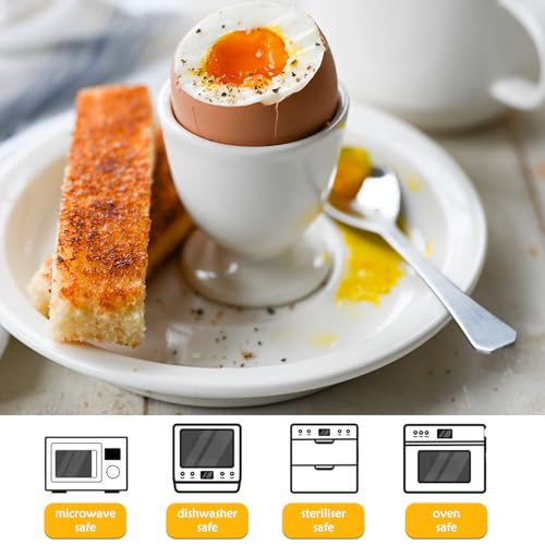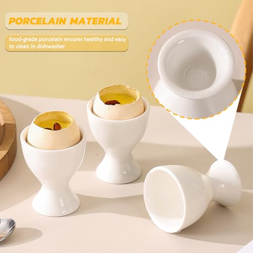 RHAFAYRE - أكواب بيض بورسلين من رافاير، مجموعة من حاملين للبيض المسلوق، أكواب بيض سيراميك للبيض المسلوق الناعم والصلب لتناول الأفطار والعشاء، سهلة التنظيف، بلون أبيض