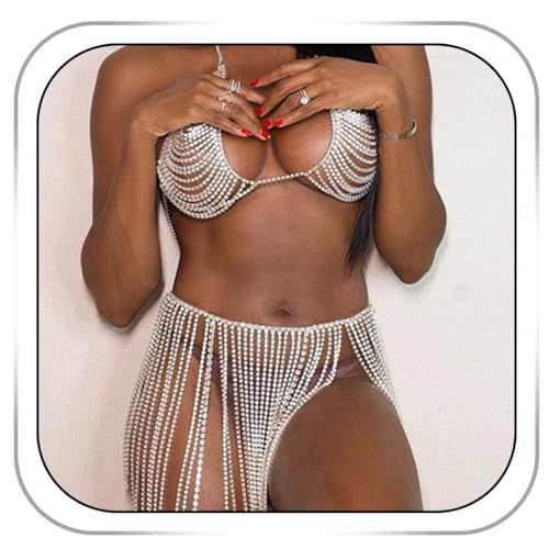 generic - سلسلة للجسم مرصعة بحجر الراين وشراشيب للجسم والخصر والبطن وتنورة سلسلة كريستال للجسم وحمالة صدر ومجوهرات للمهرجانات للنساء والفتيات (تصميم -2)