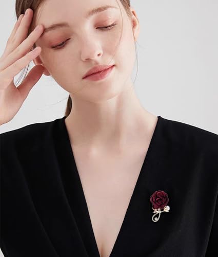 Dtja - دبوس بروش على شكل زهرة مرصع بحجر الراين للنساء والفتيات، دبوس بروش انيق مطلي بالذهب كريستال صدف لؤلؤي، دبابيس طية صدر انيقة لحفلات الزفاف والحفلات الراقصة والفساتين والعطلات، هدية مجوهرات