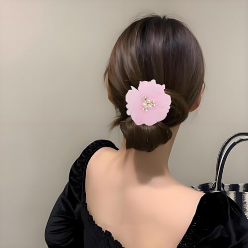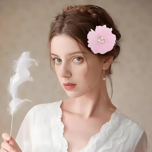Hebelee - دبابيس شعر مرصعة باحجار الراين واللؤلؤ للنساء، دبابيس شعر مصنوعة من قماش شبكي من الاورجانزا والزركونيا المكعب واللؤلؤ، اكسسوارات شعر لحفلات الزفاف والحفلات الراقصة والكنيسة (بينك)
