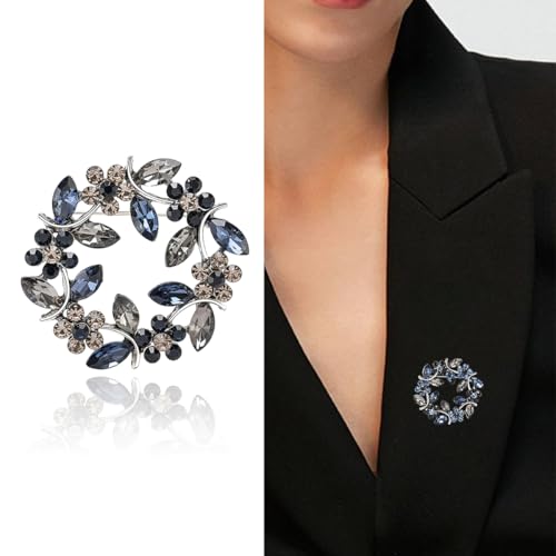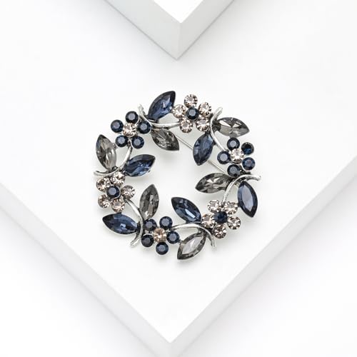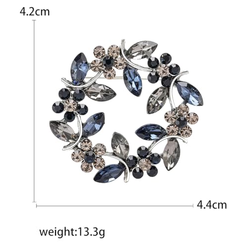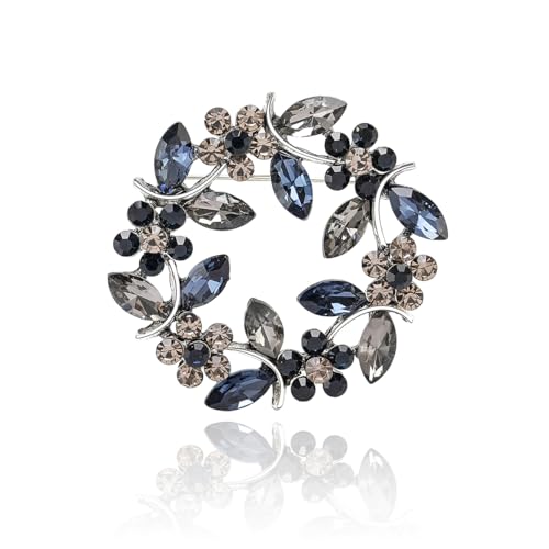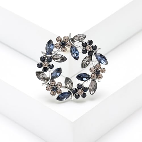 WAKYME - بروشات إكليل مرصعة بأحجار الراين للنساء، دبابيس زهور للجنسين، بروشات غصن زيتون، إكسسوارات وهدايا للمكتب والحفلات والمناسبات الكاجوال (رمادي)