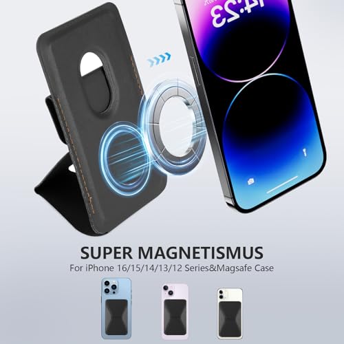 RHOADA - محفظة مغناطيسية ماج سيف لموبايل آيفون 16/15/14/13/12 من روادا، حامل بطاقات الائتمان المغناطيسي مصنوع من الجلد للرجال مناسب لموبايلات سامسونج وجوجل وسوني ونوكيا وموتورولا وغيرها (أسود)