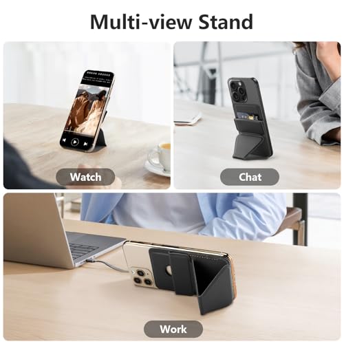 - 【حامل قابل للتعديل متعدد الزوايا】محفظة الموبايل بتصميم قابل للطي، والذي يدعم ثلاثة أوضاع للتثبيت: الوضع الأفقي والعمودي والتعليق. يمكنك تعديل محفظة ماج سيف بزاوية تصل إلى 180 درجة حسب الحاجة للحصول على الوضعية المثالية. هذه المحفظة المغناطيسية عملية للغاية وتساعدك على تحرير يديك بكل سهولة.