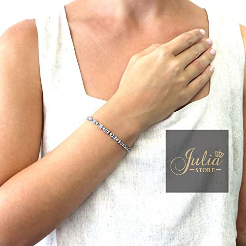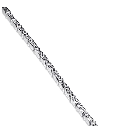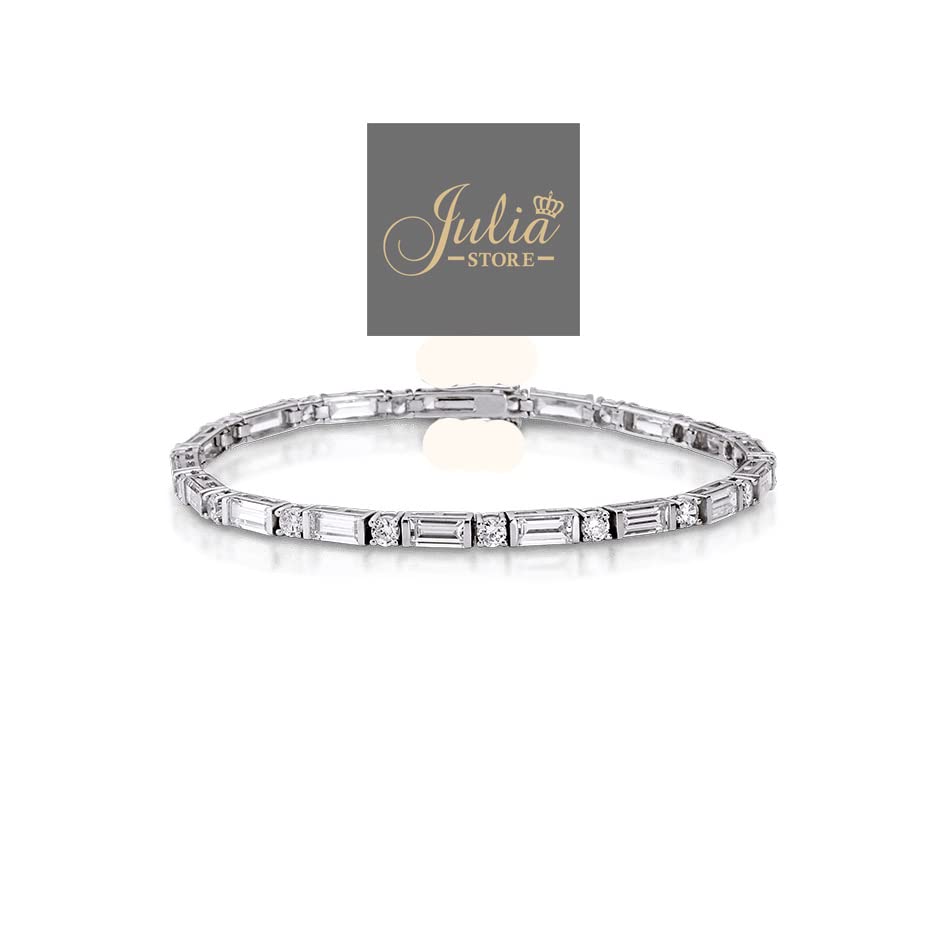 Generic - سوار تنس عصري وانيق مطلي بالروديوم ومرصع بالزركونيا المكعب بنمط دائري وباجيت للنساء مناسب لحفلات الزفاف من جوليا ستور, One Size, خليط معدني صلب, زركونيا مكعب