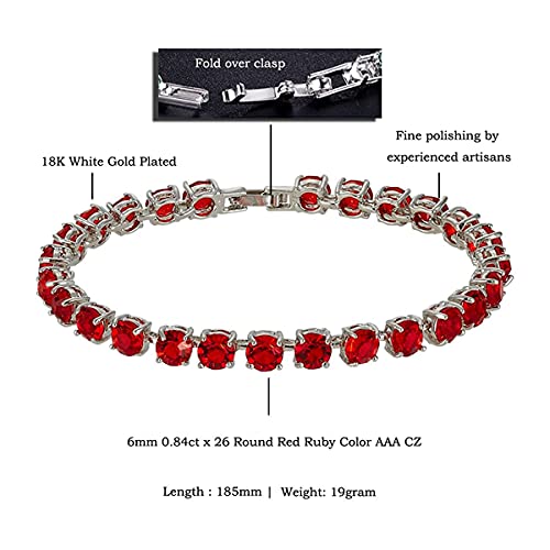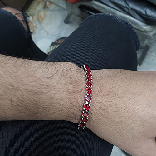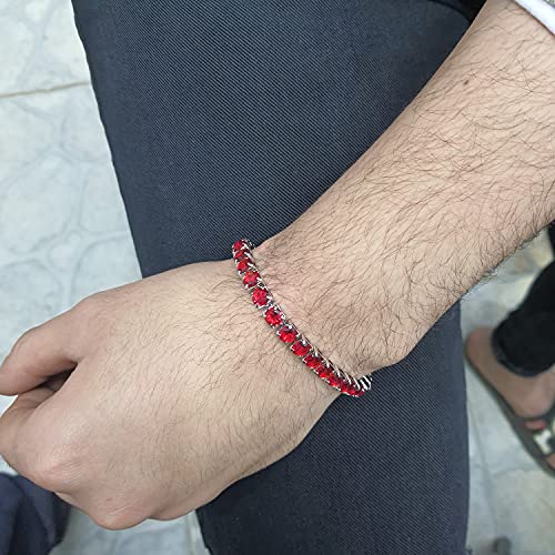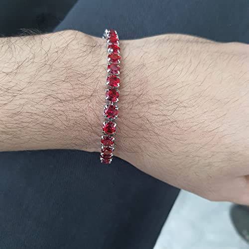 Generic - سوار تنس مقلد روبي أحمر 60 ملم مطلي بالروديوم للرجال من جوليا ستور