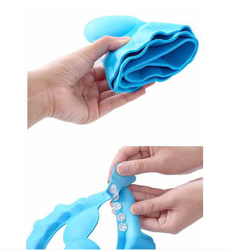 - سهلة التنظيف: فقط قم بغسل واقي حمام الطفل بالماء والصابون، الواقي من الشامبو للأطفال الصغار لا يمتص الماء.
