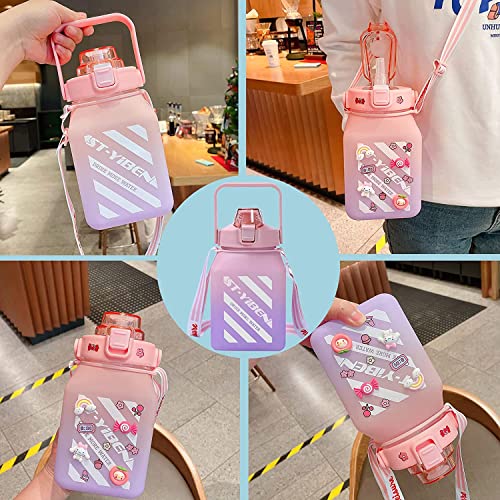 - 【زجاجة مياه محمولة】تأتي زجاجة المياه الخاصة بنا مع حزام حبل متين (قابل للإزالة) قوي بما يكفي لدعمها عندما تكون ممتلئة، بينما تسمح لك بتعليقها على كتفك أو حملها معك، ويأتي معها ستيكرات لاصقة وملصقات ثلاثية الأبعاد، يمكنك صناعة كوب الماء الخاص بك وفقًا لهواياتك.