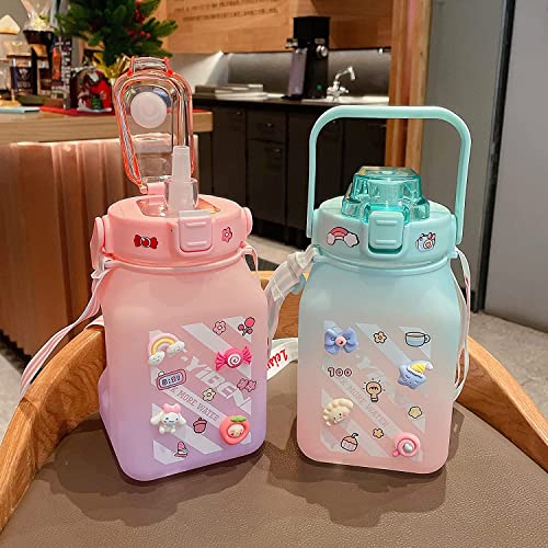 Generic - زجاجة مياه لطيفة سعة 1.5 لتر مع ماصة من ريانز، ملصقات ثلاثية الابعاد، زجاجة رياضية للبنات والاطفال والبالغين لصالة الالعاب الرياضية والمدرسة والاماكن الخارجية، قطعة واحدة (مربعة)