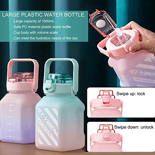 - 【إبريق مياه مربع بسعة 1.5 لتر】سعة زجاجة المياه يمكن أن تصل إلى 1500 مل، والتي يمكن أن تلبي بسهولة أهداف الترطيب اليومية. لست بحاجة إلى إضافة الماء بشكل متكرر. مجهزة بميزان قياس لمساعدتك على التحقق من مقدار ما تناولته من المياه فعليًا بوضوح. اللون المتدرج الجميل لافت للنظر، مثالي للصالة الرياضية والتمارين والمكتب وأي أنشطة خارجية.