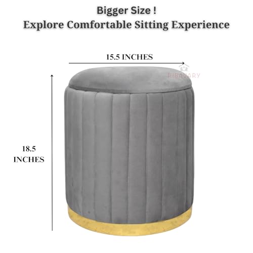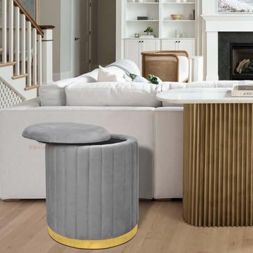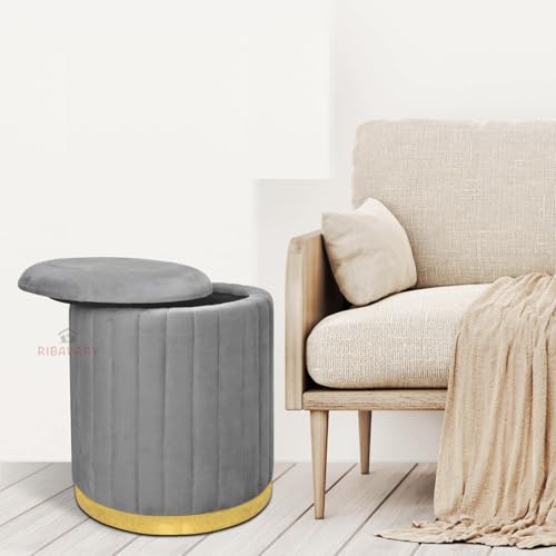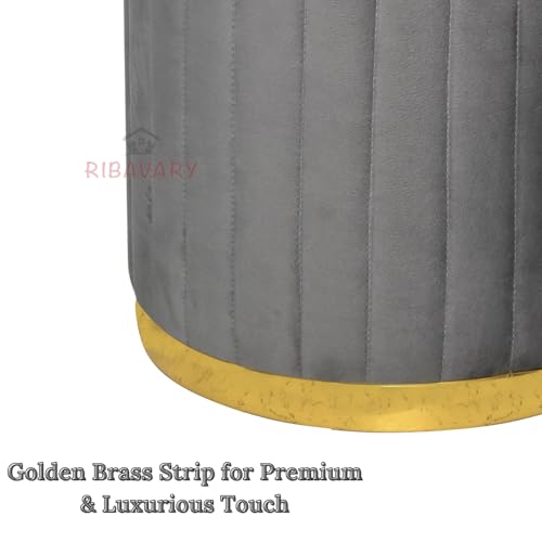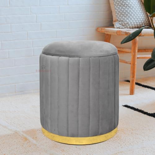 RIBAVARY - كرسي بوسادة قدم قطيفة دائري للتخزين من ريبافاري، كرسي تجميل بمسند قدم منجد مع قاعدة شريط ذهبي لغرفة المعيشة أو غرفة النوم (عبوة 2 قطعة) (عبوة 1 قطعة، بيج، رمادي)
