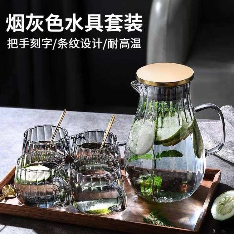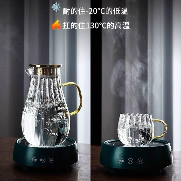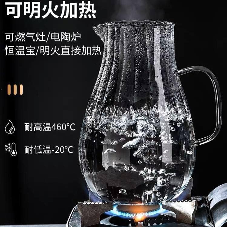 Generic - طقم شاي زجاجي مضلع، إبريق ١ لتر مع ٤ أكواب، مقاوم للحرارة من -٢٠ إلى ٤٦٠ درجة مئوية