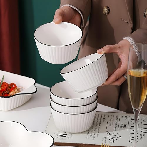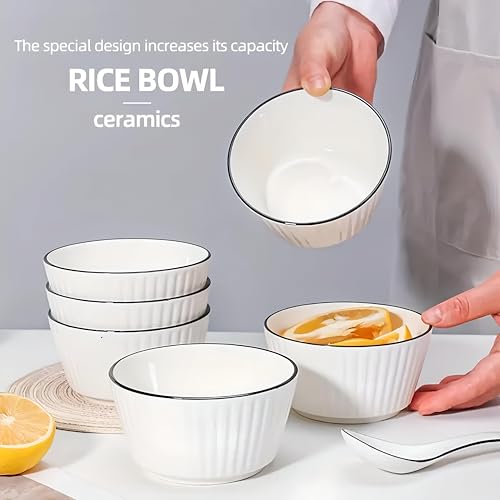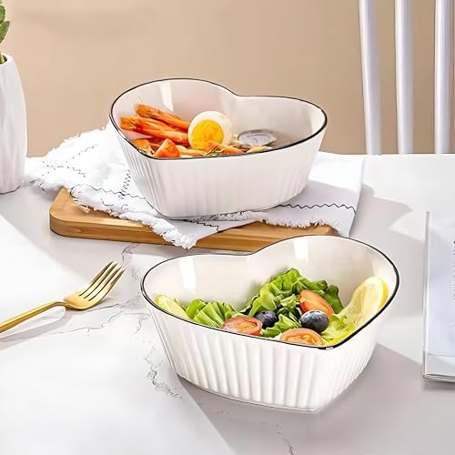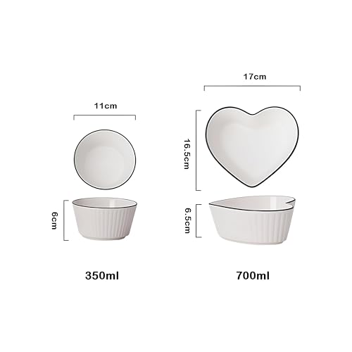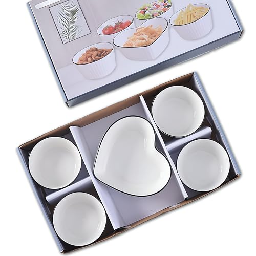 Generic - مجموعة اوعية الارز - مجموعة من 5 اوعية سيراميك مناسبة للحبوب والحساء والارز والوجبات الخفيفة؛ تتضمن اربعة اطباق دائرية ووعاء واحد على شكل قلب؛ مقاومة للخدش وامنة للاستخدام باللون الابيض.