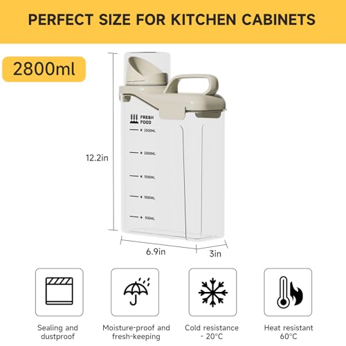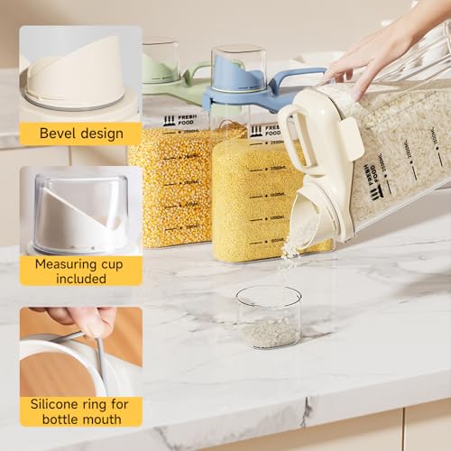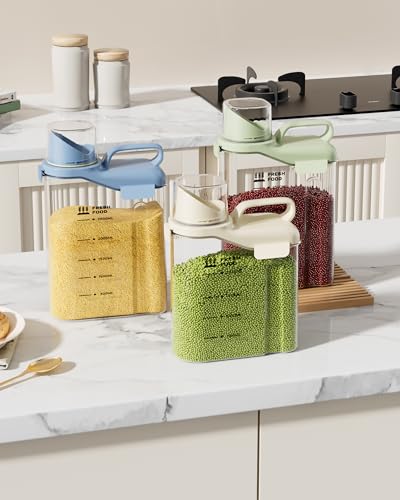 SZRUNZHU - حاويات ارز سعة 5 باوند وموزع لتخزين الحبوب - منظمات تخزين طعام محكمة الغلق خالية من البيسفينول ايه، حاويات تخزين بلاستيكية للمطبخ من مادة بي اي تي الآمنة غذائيًا مناسبة للارز والحبوب والدقيق وغيرها