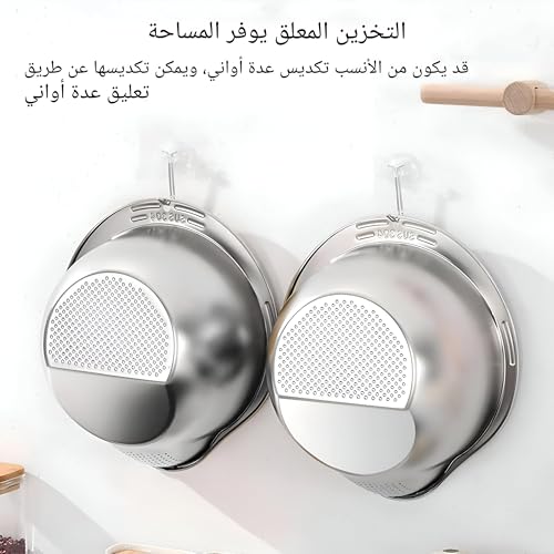 - ميزة أخرى مميزة لمصفاة غسيل الأرز هى إضافة فتحات تعليق تسمح بسهولة التخزين على الخطافات. لا يساهم اختيار التصميم العملي هذا في تنظيم المطبخ الانسيابي فحسب، بل يمنع أيضًا الفوضى، مما يساعد مطبخك على البقاء مرتبًا وفعالًا. بدلًا من أن تشغل المصفاة مساحة على المنضدة، يمكن تعليقها بسهولة، مما يوفر حلًا عمليًا ويمكن الوصول إليه للاستخدام السريع عند الحاجة.