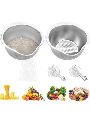 generic - وعاء مصفاة لغسل الارز، وعاء غسيل من الستانلس ستيل مع مصفاة جانبية لغسل الكينوا والفواكه والخضروات والفاصوليا والمعكرونة