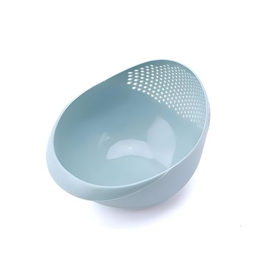 Generic - بولة غسيل الأرز، وعاء بلاستيكي مع مصفاة مدمجة مصمم لغسل الأرز والفواكة والخضروات بكفاءة دون انسكاب أو فوضى في الحوض (أزرق فاتح)