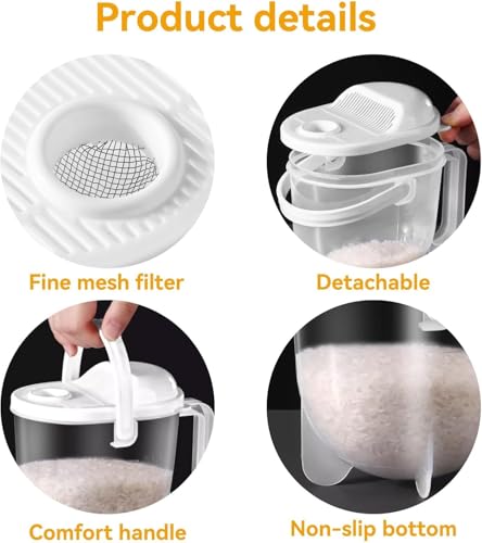 - 【تنظيف فعال】 يستخدم التصميم المبتكر ضغط الماء لتنظيف الأرز والأطعمة الحبيبية الأخرى، مع منع التدفق الزائد من فلتر المياه
