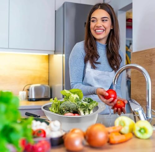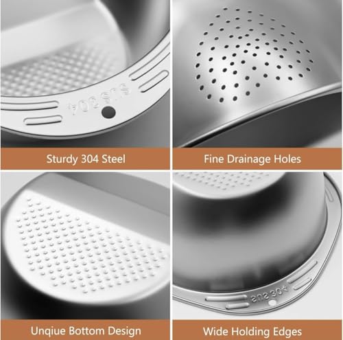 - مصفاة وعاء الغسيل مصنوعة من الفولاذ المقاوم للصدأ 304 من الدرجة الغذائية، ناعمة، مقاومة للتآكل ومتينة. يضمن البناء القوي والمادة عالية الجودة استدامتها، مما يجعلها إضافة موثوقة لمطبخك.