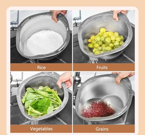 Generic - وعاء غسيل الأرز مع مصفاة جانبية من الفولاذ المقاوم للصدأ - مصفاة للغسيل للأطعمة ، الفواكه والخضروات والفاصوليا والمعكرونة