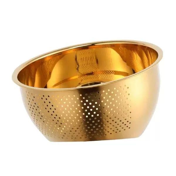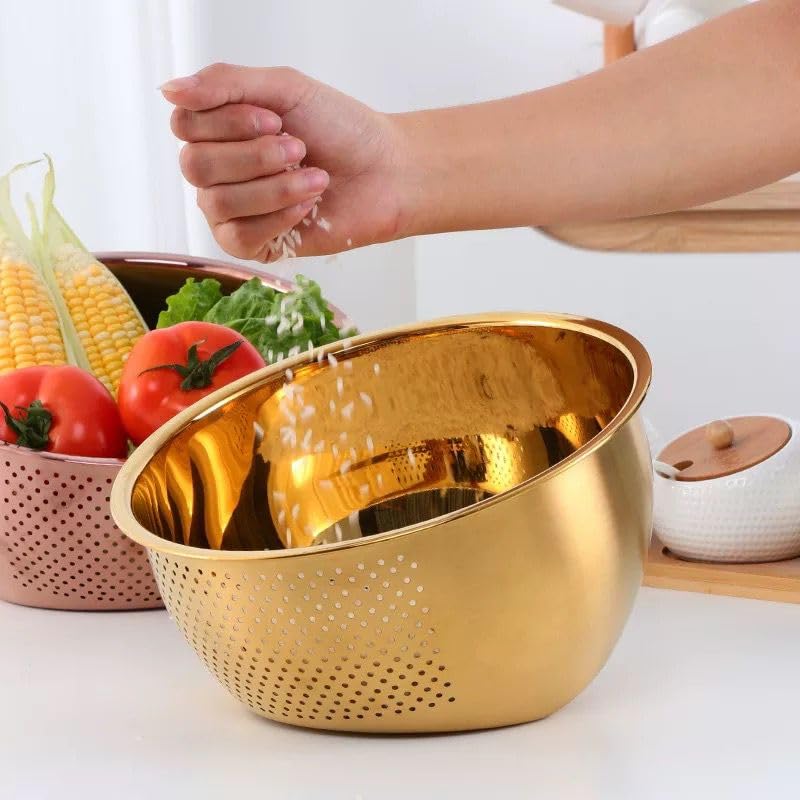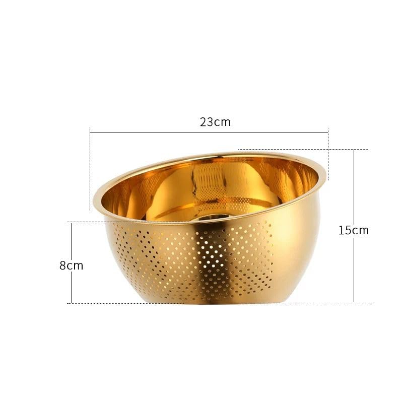 Generic - وعاء غسيل الأرز ، مصفاة مطبخ متعددة الاستخدامات 3 في 1 من الفولاذ المقاوم للصدأ مع مصافي جانبية للأرز والخضروات والفواكه - ذهبي (23 سم)