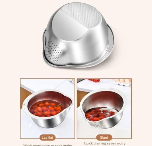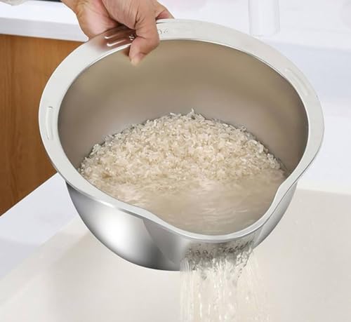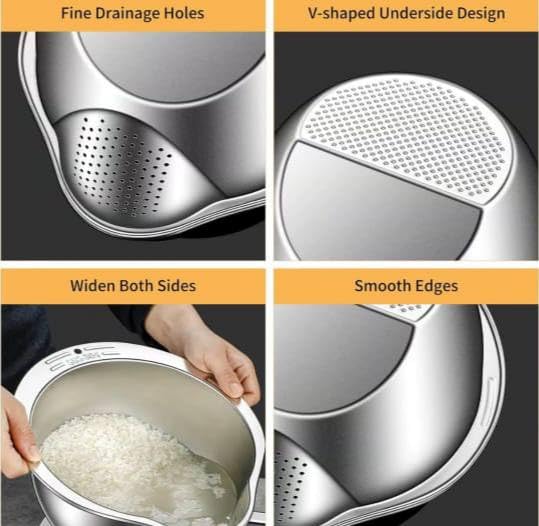 - تصميم مبتكر يجمع بين الغسيل والتصفية: يمكنك غسل الأرز أو الخضروات وتصريف المياه مباشرة من نفس الوعاء دون الحاجة لأدوات إضافية.
