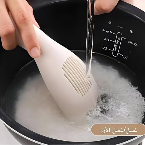 - توفر الأداة وظيفة متعددة وتسمح باستخدامها في غسل الأرز، وتصفية الأرز، وحتى كملعقة أو مغرفة للأرز، مما يضيف مرونة كبيرة وتعدد الاستخدامات لتلبية جميع احتياجات المطبخ.