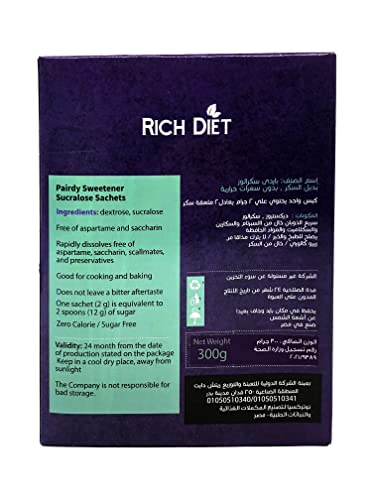 rich diet - ريتش دايت سكرلوز محلى طبيعي بديل السكر، 150 كيس ( 2 جرام)