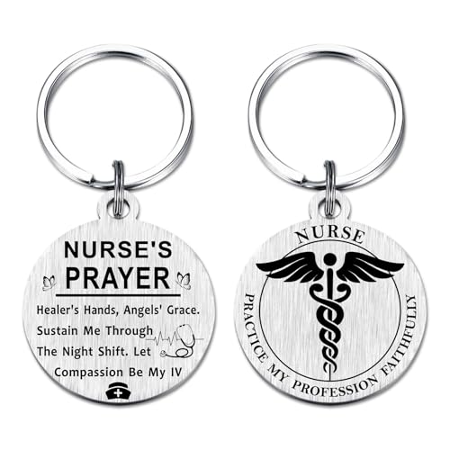 Richesele - سلسلة مفاتيح صلاة الممرضة من ريتشسيل - هدية محفورة بالليزر من الستانلس ستيل للممرضات او اسبوع تقدير الممرضات او التخرج او المهنيين الطبيين