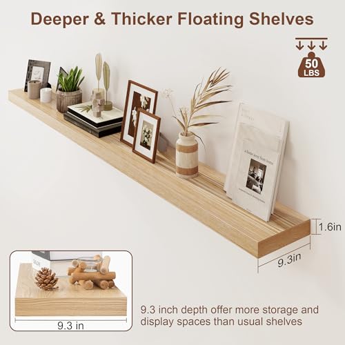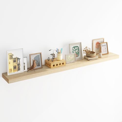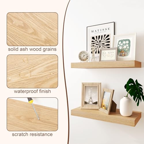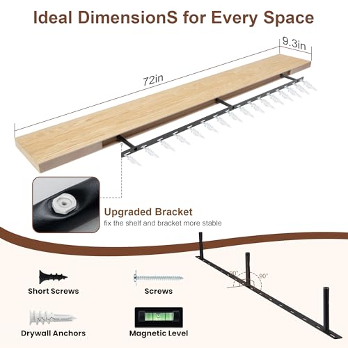 RICHFOCUS - أرفف عائمة للحائط مع قشرة خشب رماد صلب، أرفف حائط طويلة مع دعامات مطورة لغرفة المعيشة والحمام والمنزل والمكتب من ريتشفوكاس - قطعة واحدة، مقاس 72 سم عرض × 9.3 سم عمق
