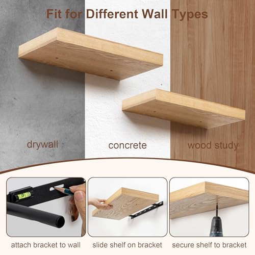 - ديكور منزلي رائع - أرفف عائمة خفيفة الوزن مع لمسة نهائية من الخشب الحقيقي هي إضافة رائعة لافتة للنظر لأي غرفة. مثالية لغرفة المعيشة أو الحمام أو غرفة النوم أو المكتب المنزلي أو المنزل الريفي.