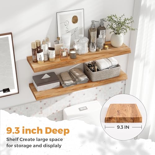 RICHFOCUS - أرفف معلقة لايف ايدج ايلم من ريتشفوكس 91 سم عرض × 24 سم عمق، أرفف حائط خشب صلبة ريفية مع دعامة غير مرئية، تثبت على الحائط لغرفة المعيشة وغرفة النوم والمطبخ والتخزين والعرض، مجموعة من قطعتين، طبيعي