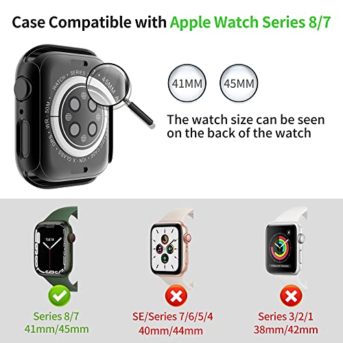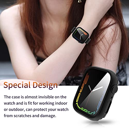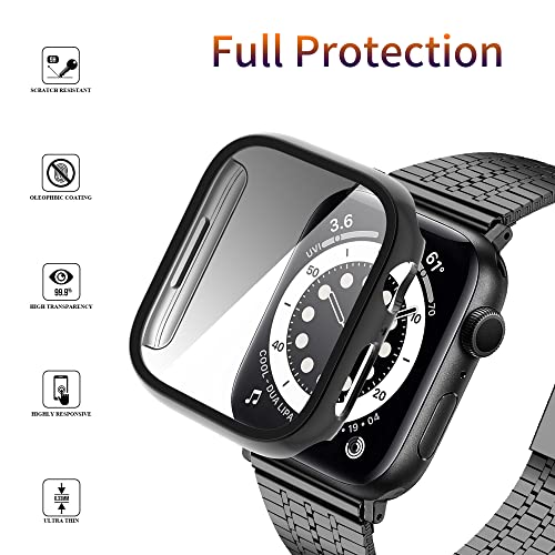 RICHONE - جراب من ريتشون متوافقة مع سلسلة ساعة ابل 8- 7 بشاشة حماية الزجاج المقوى ممتص صدمات صلب البولي كربونات تغطية كاملة مقاس 45 ملم بلون اسود 2 [عبوة قطعتين داخل العبوة]