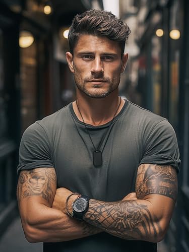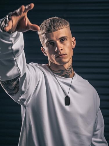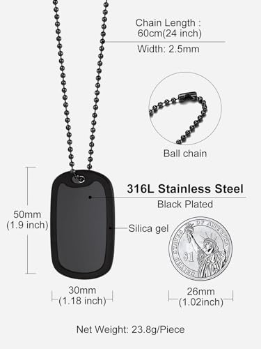 Richsteel - عقد من الياف الكربون والستانلس ستيل بنمط الهيب هوب بدلاية بتصميم بطاقة عسكرية ورصاصة وكتاب، مطلي بذهب عيار 18 ومناسب للبالغين من الجنسين لتعليق الهوية مع صندوق هدايا من ريتش ستيل, معدن