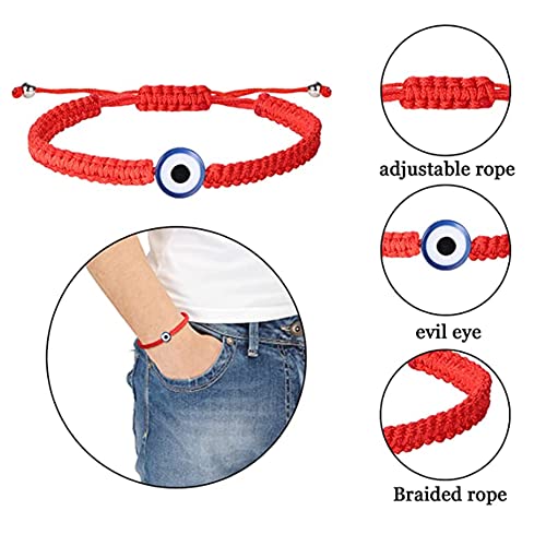 Ricjurzzty - اساور عين الحسد بخيط احمر واسود للرجال والنساء من كابالا سوار يد هاسما حماية قابلة للتعديل 6 قطع - عبوة .