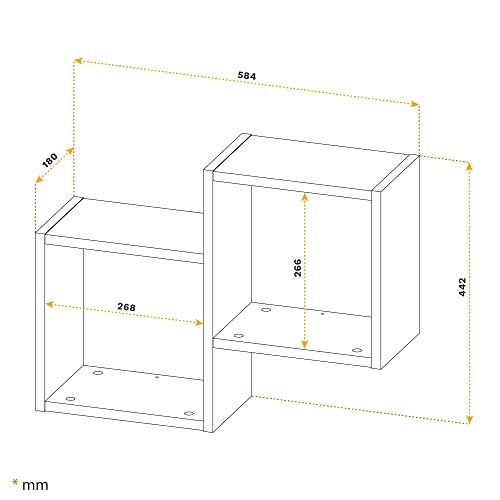 - هام: هذه القطعة من الأثاث عصرية ومصنوعة من خشب مضغوط مضغوط. مناسبة فقط للاستخدام في الأماكن المغلقة. الأبعاد: 584 ملم عرض، 442 ملم ارتفاع، 180 ملم عمق.