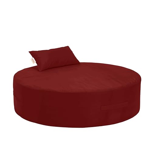 ricrac - سرير ووسادة صغيرة مستديرة من ريكراك رونتيك، مقاس 120 سم × 120 سم × 25 سم، لون عنابي للأماكن الخارجية