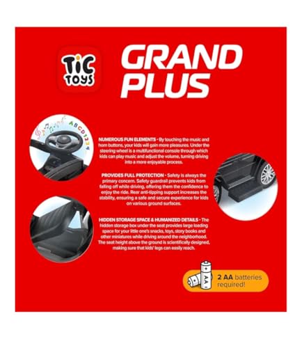 Generic - سيارة ركوب للاطفال، مع موسيقى وتخزين مخفي، للاعمار من 1-7 سنوات (رمادي)
