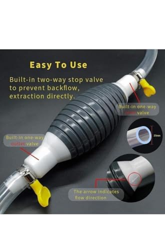 - Rubber hand pump that starts siphoning liquid flow quickly.