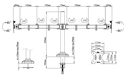- حامل بتوافق عالمي: يعمل مع الشاشات التي يتراوح حجمها من 17 إلى 27 بوصة، وبحد أقصى لوزن الدعم 10 كجم لكل شاشة، باستخدام نمط فتحة المسامير المربعة فيسا 75 × 75 ملم أو 100 × 100 ملم الموجود في الجزء الخلفي من الشاشات.