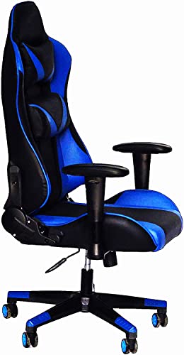 Omega Pro - كرسي للالعاب بتصميم ظهر متقاطع يوحي بسباق السيارات من نيو اوميجا برو باللون الازرق، جلد