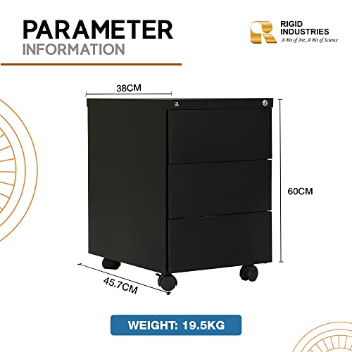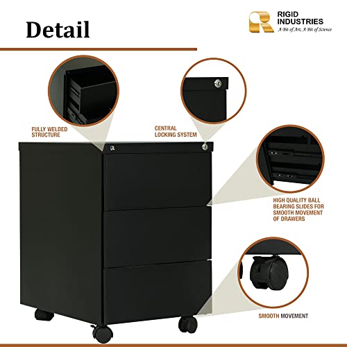 R - وحدة تخزين متنقلة من الصلب بثلاثة أدراج من ريجيد – أثاث مكتبي حديث وأنيق باللون الأسود