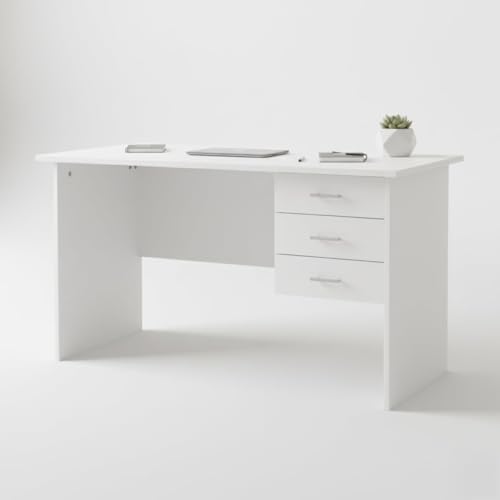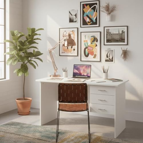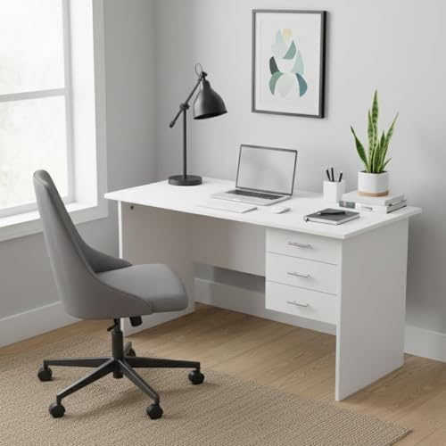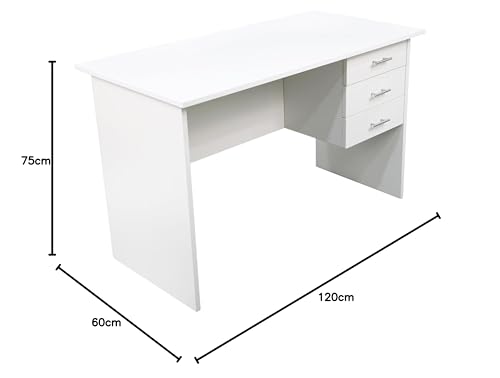 R - ار مكتب خشبي مع 3 أدراج بيضاء للاستخدام المنزلي والمكتب من اي جي اي دي
