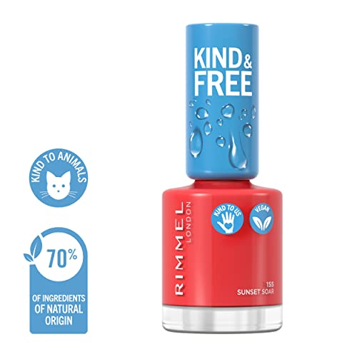 Rimmel - طلاء أظافر كايند اند فري بلون 155 صن سيت سوار، 8 مل، من ريميل، أحمر