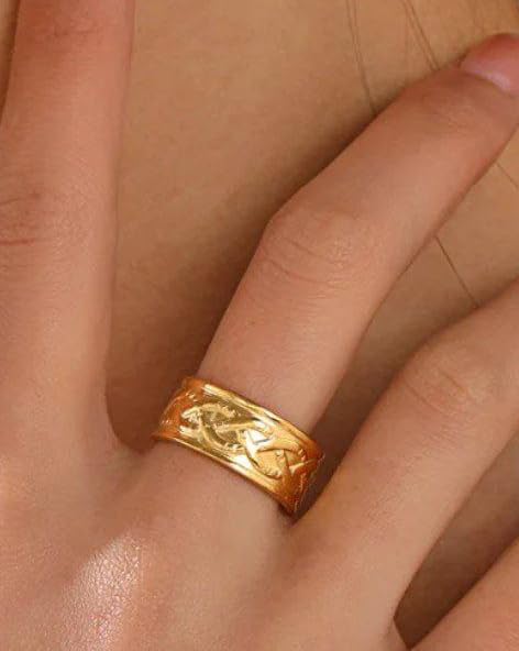 Generic - خاتم بي ايه جي يو اي اند ستايل كوري هدية للنساء للزوجة والعشاق وافراد العائلة من الستانلس ستيل مطلي بالذهب عيار 18 قيراط - فتحة قابلة للتعديل